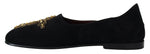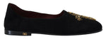 Dolce & Gabbana Black Suede Gold Cross Slip On Loafers Shoes