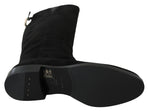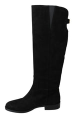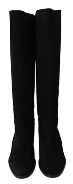 Dolce & Gabbana Black Suede Knee High Flat Boots Shoes