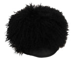Dolce & Gabbana Black Tibet Lamb Fur Leather Gatsby Hat