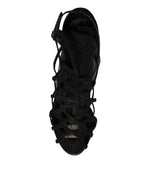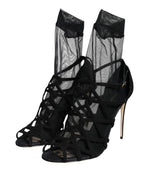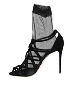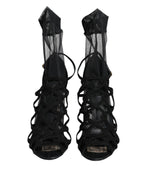 Dolce & Gabbana Black Tulle Stretch Heels Sandals Shoes