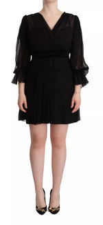 Dolce & Gabbana Black V-neck Long Sleeves Mini A-line Dress