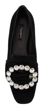 Dolce & Gabbana Black Velvet Crystals Loafers Flats Shoes