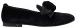Dolce & Gabbana Black Velvet Flats Bow Young Queen Shoes