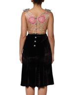 Dolce & Gabbana Black Velvet Flower Embellishment Aline Dress