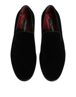 Dolce & Gabbana Black Velvet Loafers Formal Men Dress Shoes