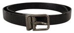 Dolce & Gabbana Black Vernice Puntinata Leather Silver Tone Metal Belt