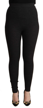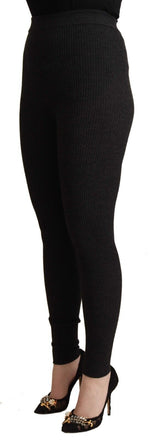Dolce & Gabbana Black Virgin Wool Stretch Waist Tights Pants