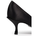 Elegant and refined, the pumps are made of satin and embellished with a bow with crystal applied on the upper.