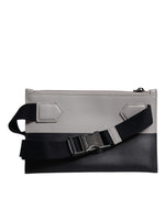 Dolce & Gabbana Black White Leather Logo Embossed Crossbody Bag
