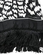 Dolce & Gabbana Black White Patterned Fringes Shawl Scarf