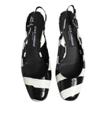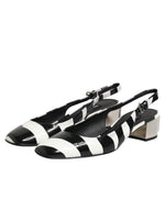 Dolce & Gabbana Black White Stripe Heels Slingback Shoes