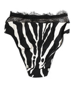 Dolce & Gabbana Black White Zebra Print Lace Trim High Underwear
