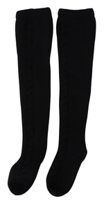Dolce & Gabbana Black Wool Knit Calf Long Women Accessory Socks