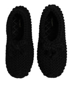 Dolce & Gabbana Black Wool Slip On Flats Ballerina Shoes