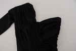 Dolce & Gabbana Black Wrap Sheath One Shoulder Wool Dress
