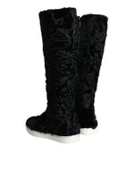 Dolce & Gabbana Black Xiangao Lamb Fur Leather Boots Shoes