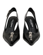 Dolce & Gabbana Black Zipper Leather Heels Slingbacks Shoes