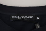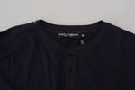 Dolce & Gabbana Blue Cotton Button Crewneck Pullover Sweater