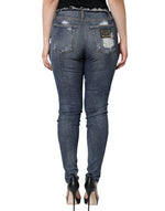 Dolce & Gabbana Blue Cotton Stretch Tattered Skinny Jeans