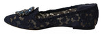 Dolce & Gabbana Blue Crystal Loafer Lace Ballet Flats Shoes