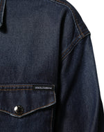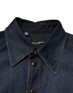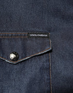 Dolce & Gabbana Blue Denim Button Casual Logo Patch Men Shirt