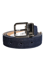Dolce & Gabbana Blue Denim Silver Logo Metal Waist Buckle Belt