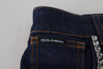 Dolce & Gabbana Blue Denim Stretch Crystal Hot Pants Shorts