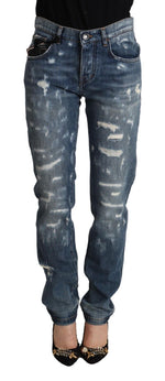 Dolce & Gabbana Blue Distressed Denim BOYFRIEND Skinny Jeans