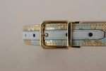 Dolce & Gabbana Blue Leather Jacquard Embossed Gold Metal Buckle Belt