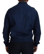 Dolce & Gabbana Blue Leather Perforated Full Zip Jacket