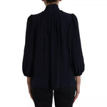 Dolce & Gabbana Blue Long Sleeves Ascot Collar Blouse Top