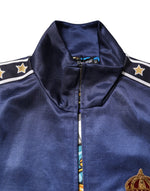 Dolce & Gabbana Blue Nylon Logo Patch Men Bomber Sweater