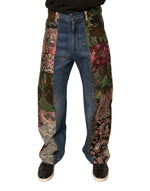 Dolce & Gabbana Blue Patchwork Cotton Straight Denim Jeans