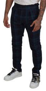 Dolce & Gabbana Blue Purple Plaid Wool Trousers Pants