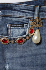 Dolce & Gabbana Blue Rhinestone Embellished Denim Jeans