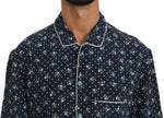 Dolce & Gabbana Blue Skull Print Silk Top Sleepwear Shirt