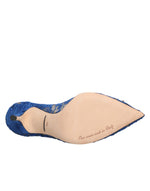Gorgeous brand new, 100% Authentic Dolce & Gabbana Blue Taormina Lace DEVOTION Pumps radiate timeless sophistication and romantic allure. Crafted from delicate floral lace over a tonal base, they feature the brand’s iconic bejeweled Sacred Heart emblem on the front — a signature symbol of devotion and elegance. Designed with a pointed toe and slim stiletto heel, these pumps perfectly complement both evening and formal looks, capturing Dolce & Gabbana’s signature feminine refinement.