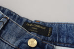 Dolce & Gabbana Blue Tattered Skinny Denim Cotton Jeans