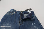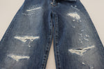 Dolce & Gabbana Blue Washed Cotton Tattered Denim Jeans
