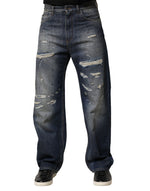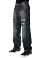 Dolce & Gabbana Blue Washed Tattered Cotton Men Jeans