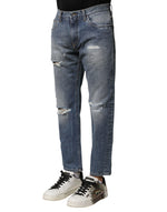 Dolce & Gabbana Blue Washed Tattered Straight Fit Denim Jeans