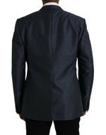 Dolce & Gabbana Blue Wool GOLD Single Breasted Coat Blazer