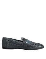 Dolce & Gabbana Blue Woven Raffia Slip On Loafers Shoes