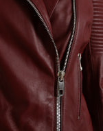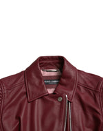 Dolce & Gabbana Bordeaux Leather Biker Coat Lambskin Jacket
