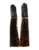 Dolce & Gabbana Brown Black Leopard Leather Elbow Length Mitten Gloves