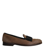 Dolce & Gabbana Brown Calf Hair Leather Loafers Formal Dress Shoes