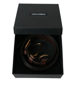 Dolce & Gabbana Brown Calf Leather Gold Metal Buckle Belt