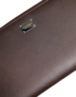 Dolce & Gabbana Brown Calfskin Leather Logo Zip Around Continental Wallet
