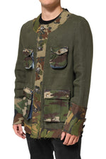 Dolce & Gabbana Brown Camouflage Linen Button Down Jacket