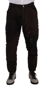 Dolce & Gabbana Brown Cotton Distressed Regular Denim Jeans